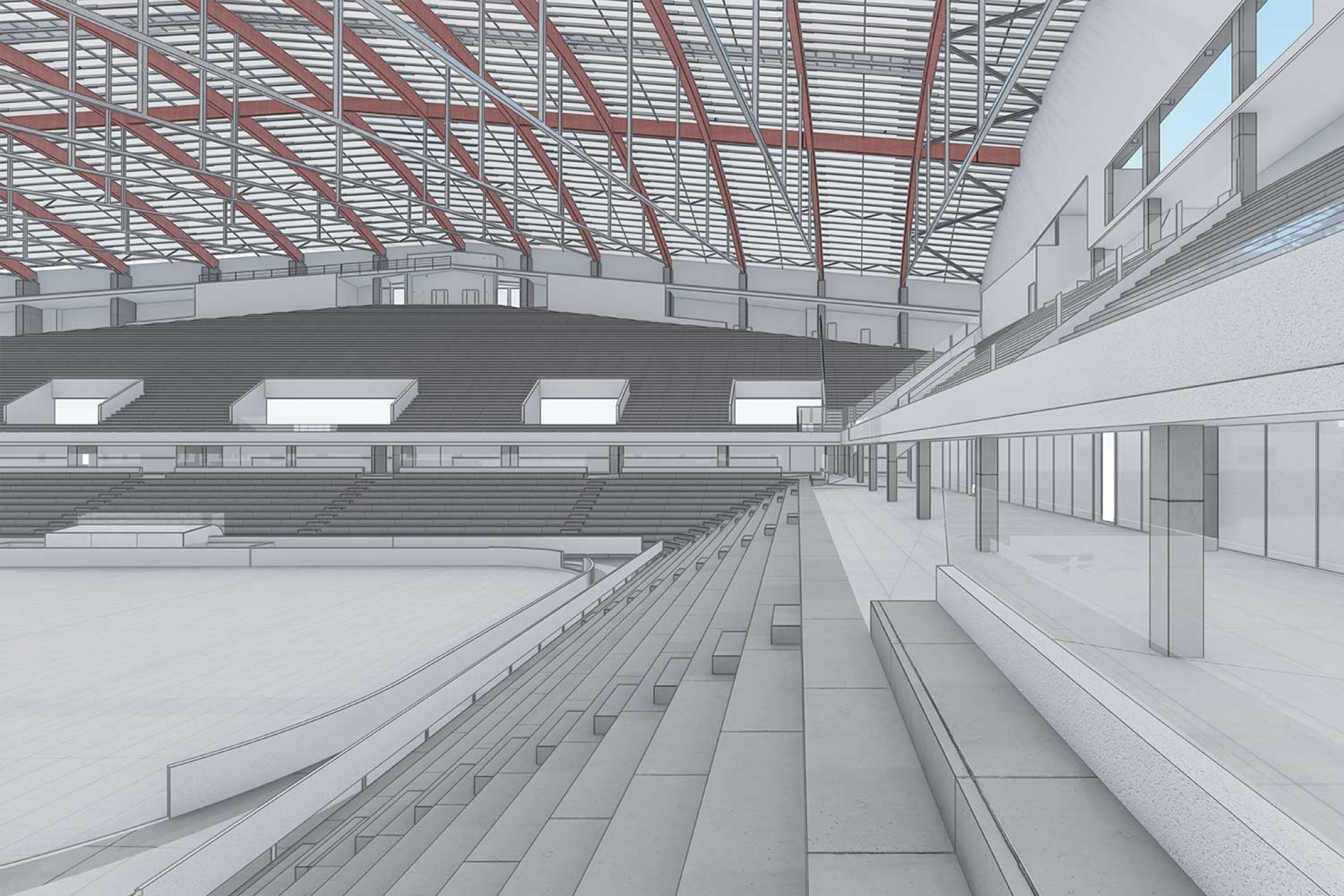 Die PostFinance Arena in Bern ist eine der bekanntesten Sportstätten der Schweiz. Für die Frutiger AG führte die HMQ AG eine umfassende Gebäudeaufnahme der Arena durch. Das Ziel: eine verlässliche Projektierungsgrundlage für die Sanierungsplanung des Hallendachs. Das Resultat: ein massgenaues 3D-Architekturmodell im Detaillierungsmassstab 1:50.