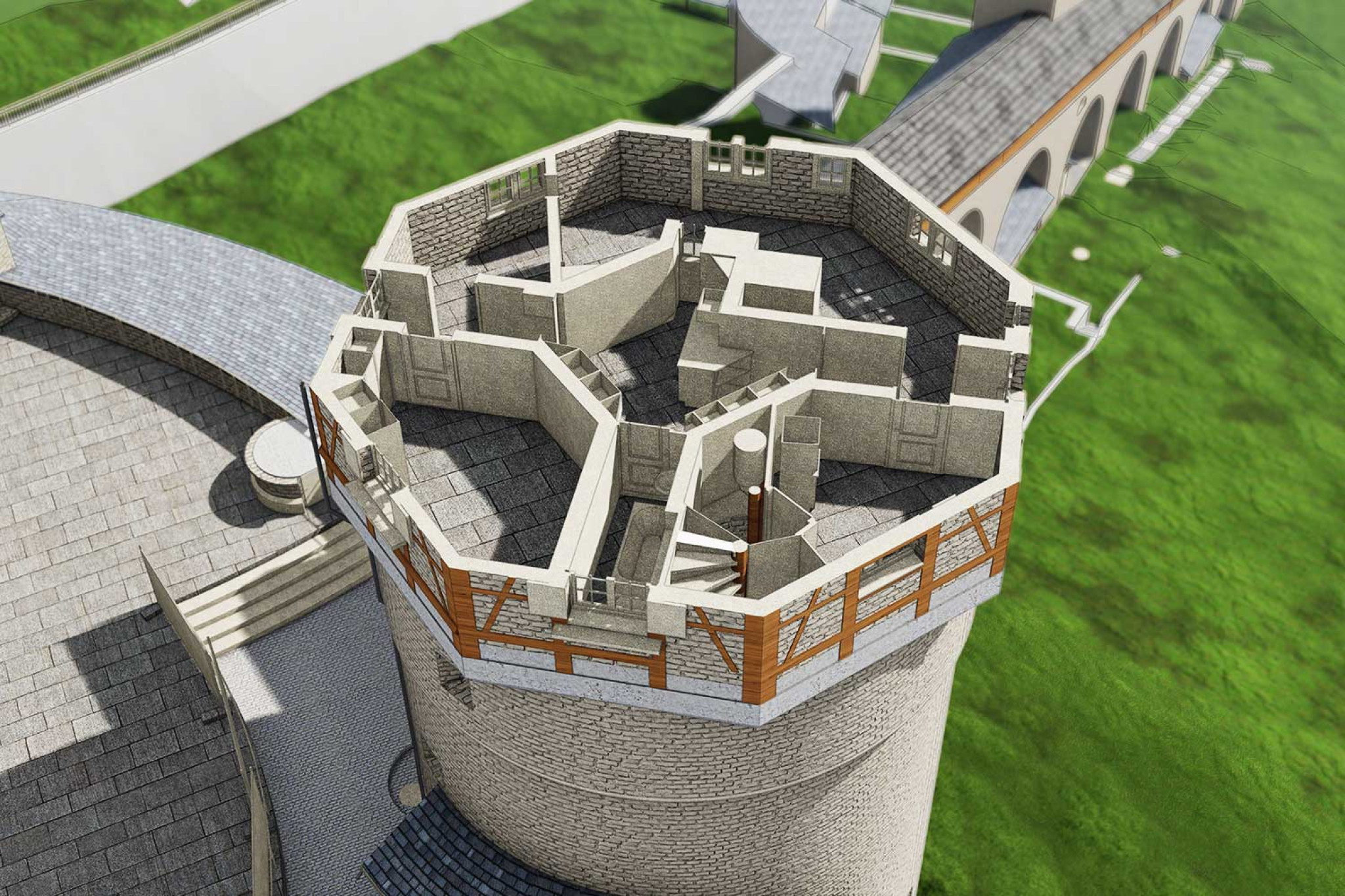 Der Munot in Schaffhausen ist die einzige noch erhaltene Zirkularfestung Europas. Ein Bauwerk aus dem 16. Jahrhundert, das sich in kein Standard-Raster einfügt. Alle Geschosse, Flankenmauern, der Römerturm, die Wohnung: alles in mehreren Etappen aufgenommen, kombiniert aus Laserscan und Drohne. Das Rohmaterial umfasst 325 Gigabyte Scandaten, verdichtet zu einem IFC-Modell von 270 Megabyte, mit dem ArchiCAD und openBIM direkt arbeiten können.