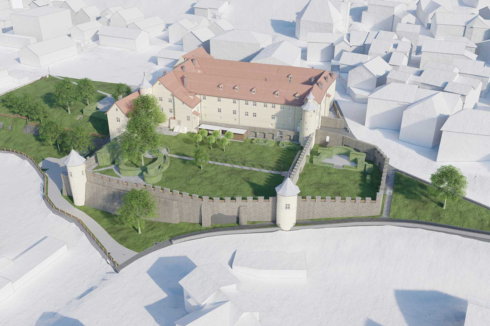 Das Schloss Haldenstein, eine Anlage aus dem 16. Jahrhundert, erfasste HMQ 2024 für das Hochbauamt Kanton Graubünden. Das BIM-Modell verbindet die lokale Bestandsaufnahme mit den nationalen swisstopo-Datensätzen swissALTI3D und swissBUILDINGS3D. Eine solide Basis für die anstehende Machbarkeitsstudie der kantonalen Liegenschaft.