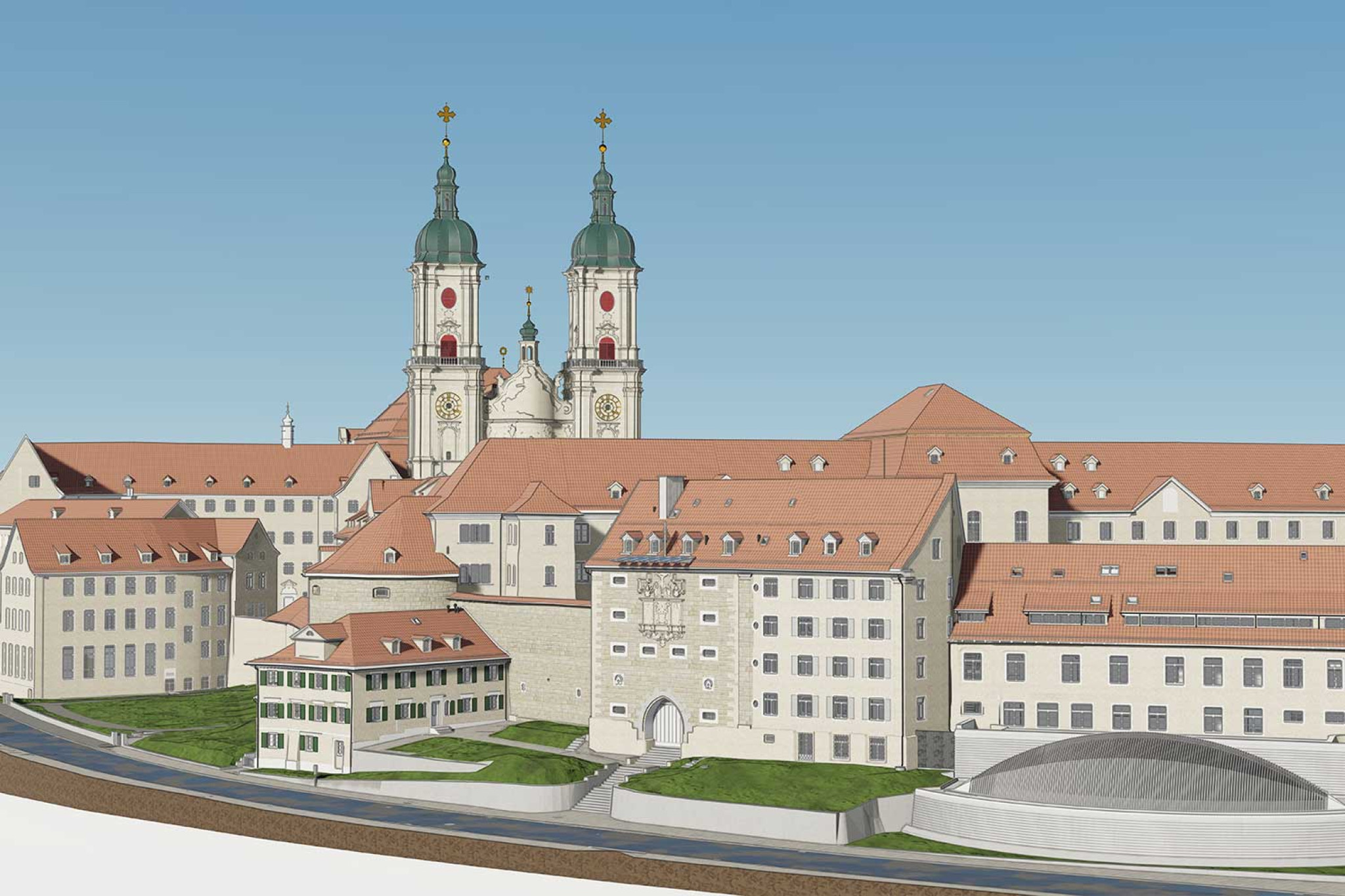Der Stiftsbezirk St. Gallen wurde 1983 zum UNESCO-Weltkulturerbe ernannt. Zwischen 2023 bis 2025 hat HMQ im Auftrag des Kantons und des Katholischen Konfessionsteils den gesamten Bezirk aufgenommen: Kathedrale, Klosterhof, Regierungsgebäude, Karlstor und die umliegenden Bauten entlang Moosbruggstrasse und Zeughausgasse. Das Modell wird unter anderem zur Basis für den UNESCO-Welterbe-Managementplan genutzt.